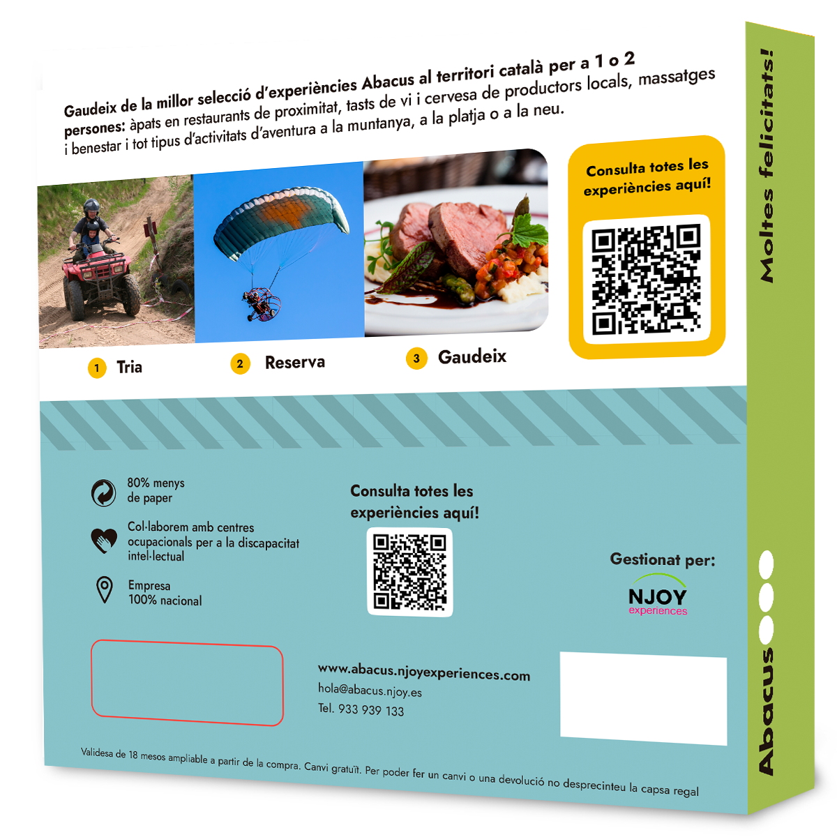 Disfruta de la millor selecció d’experiències Abacus per tot el territori català i rodalies: cates de vins i cerveses, dinars i sopars de diferents cuines del món, massatges i benestar i tot tipus d’activitats d’aventura a la muntanya a la platja o a la neu.