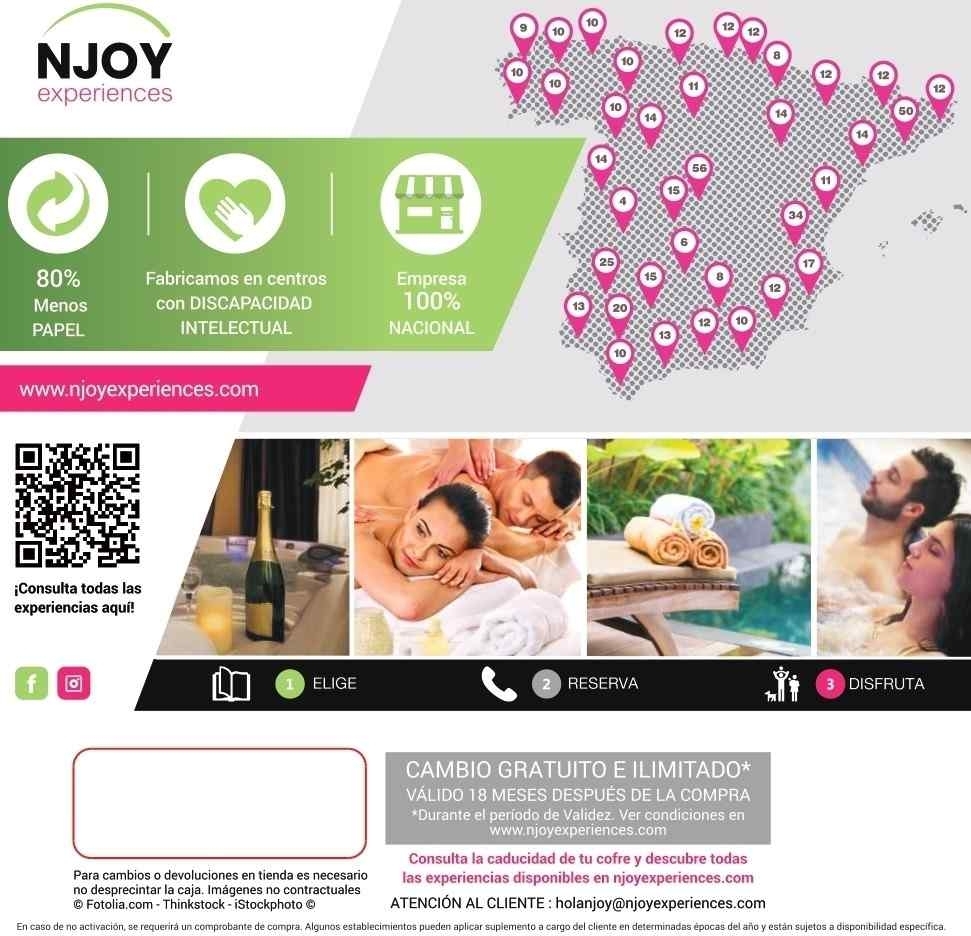 NJOY Experiences te propone el cofre ideal para relajarte y desconectarte en pareja o con amigos. Escoge entre masajes para dos, tratamientos faciales o corporales, circuitos de spa, ¡y mucho más para que vivas un momento único!