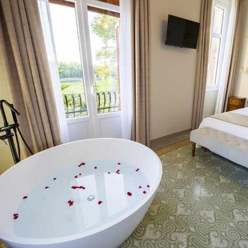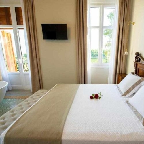 Disfruta de una noche de alojamiento para 2 personas en una habitación doble con terraza con una elegante cama de estilo isabelino de madera de caoba del siglo XIX.