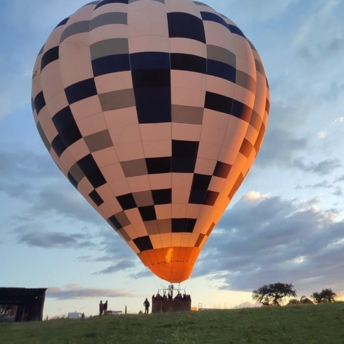 Tiempo de vuelo: 1 hora aproximadamente. El globo se desplazará con el viento, y la tripulación nos seguirá por tierra con los vehículos todoterreno.