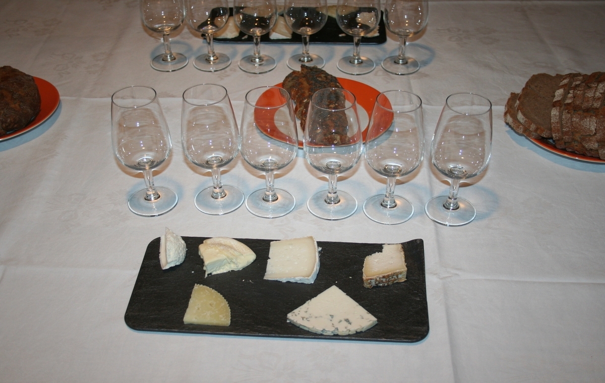 Cada comensal tindrà un plat on hi haurà disposats els formatges, i tindrà 6 copes, on se li serviran els vins.