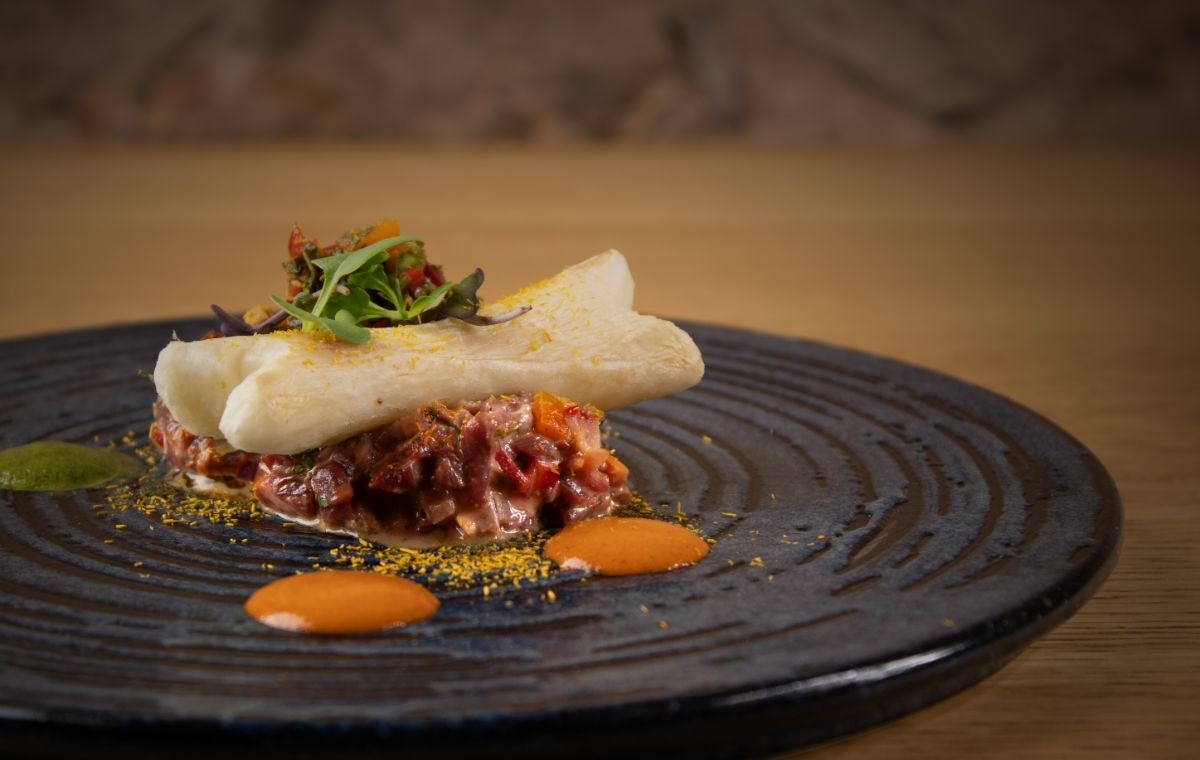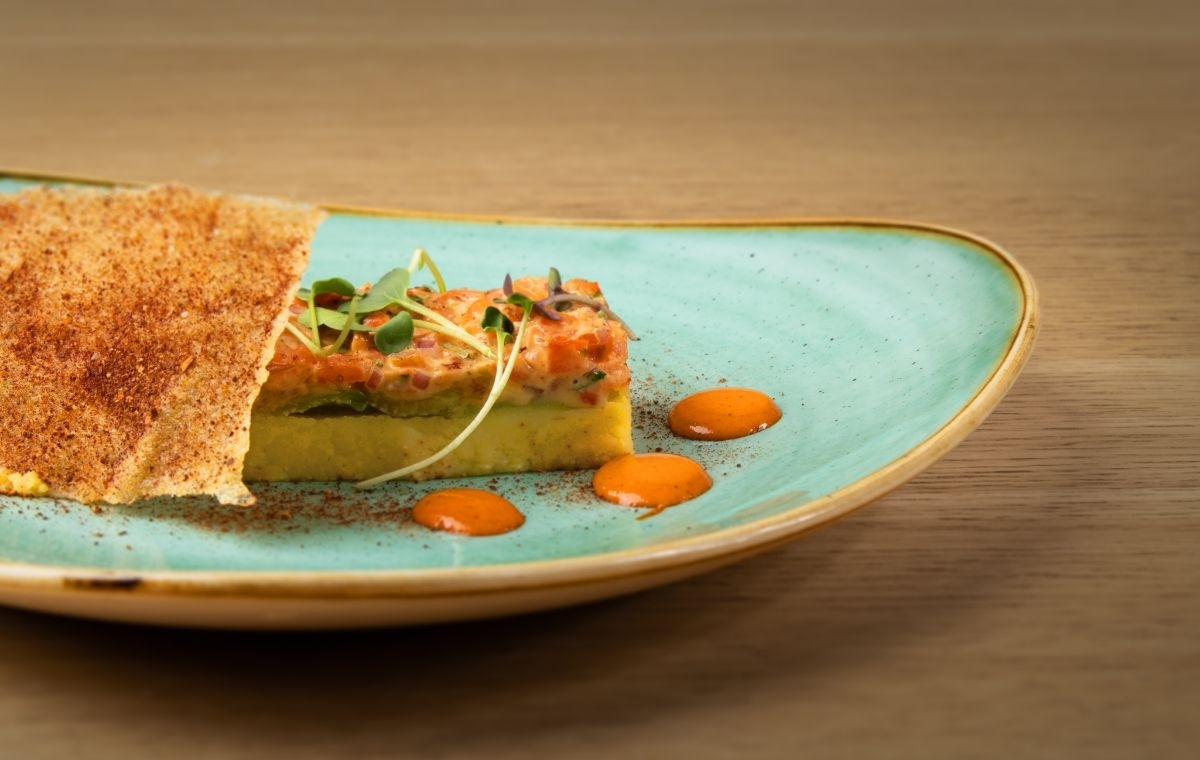 Entrantes: Ceviche clásico de corvina, Causa acevichada con aguacate y pollo, Carbón de yucas con salsa de huancaína.