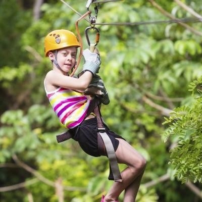 La entrada de día incluye todas las actividades del Parque multiaventura desde los parques de juegos en altura con tirolinas, puentes y rocódromos hasta un relajante paseo en poni. Tráete la comida y disfruta de todo el día en familia y con amigos.