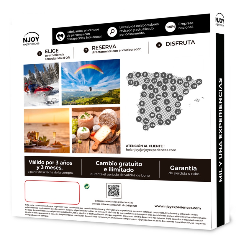 NJOY Experiences te propone el cofre perfecto para vivir una experiencia única. ¿Dónde alojarte o que experiencias realizar? Hotel Ciutadella (Girona), Hotel Atiram (Andorra), Hotel Terralta (Girona), Casa Spa La Villa (Ávila), Cena con espectáculo de Humor y Magia entre otras fantásticas opciones.